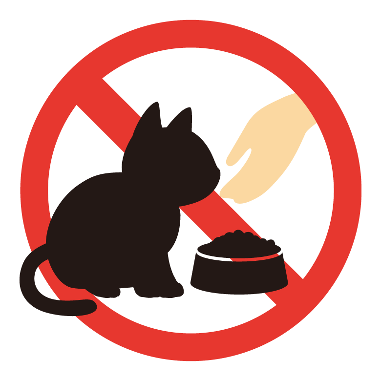 猫へのエサやり禁止の看板や張り紙を作成する際のイラストにいかがでしょうか。