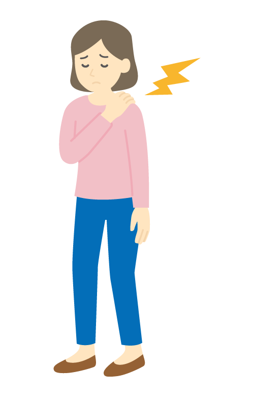 肩の痛みや肩こりで辛そうな表情の女性のイラストなので、