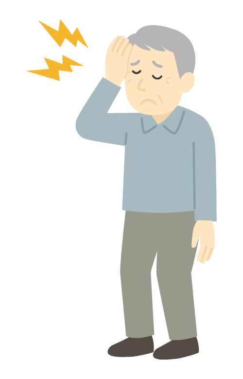 片頭痛などで辛そうな表情のおじいさん(年配者)のイラストなので、